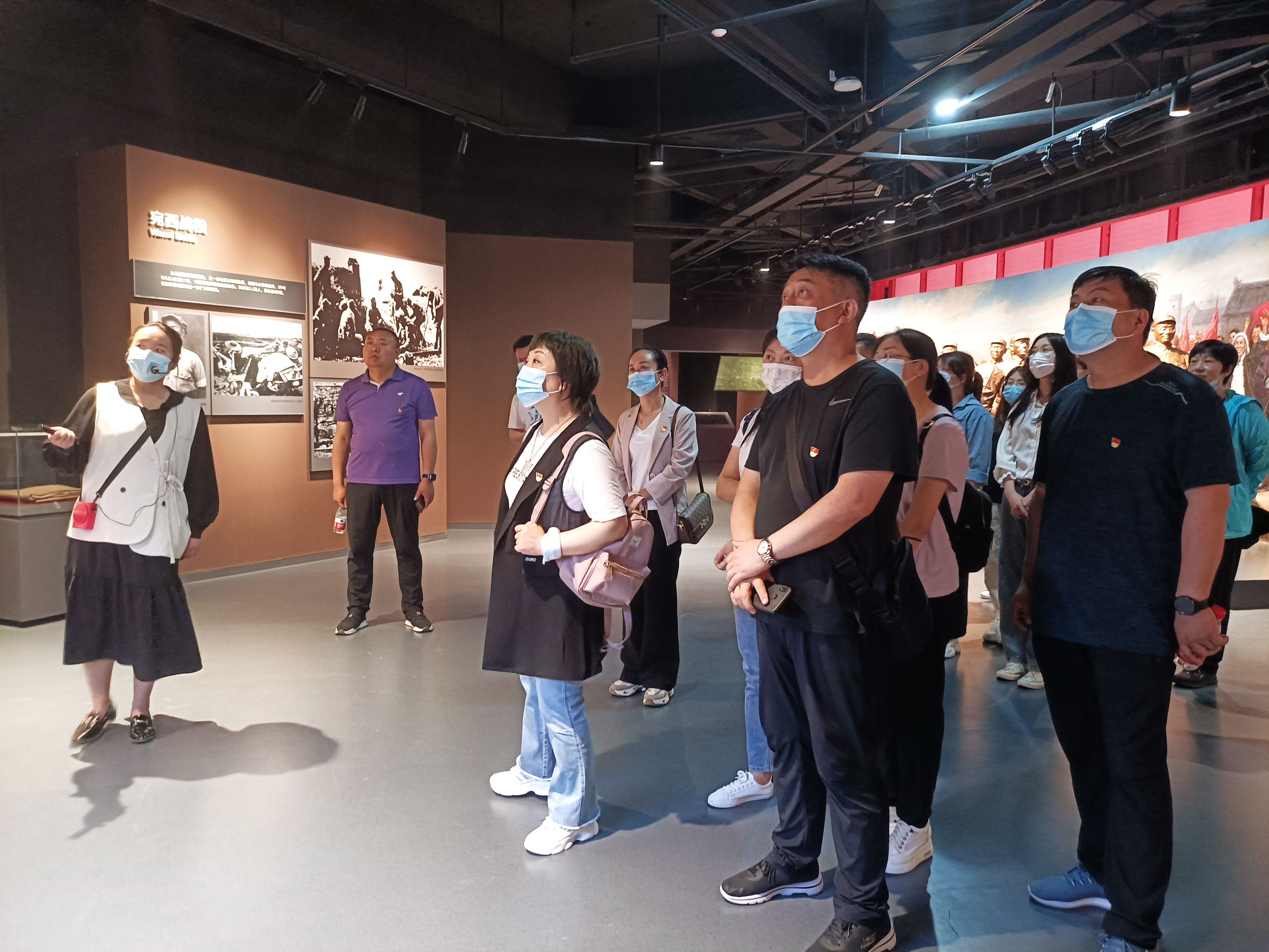 在中原解放纪念馆一楼大厅党旗前,党员们重温了入党誓词,回顾入党时的庄严承诺,明确肩负的神圣使命。中原解放纪念馆采用文字、照片、历史实物等形式对中原解放历史和红色革命精神进行集中展示。在馆内,党员们认真聆听讲解员的解说,深入了解中原解放历史,一幅幅画面、一张张图片触动了党员们的心灵,感受到了中国共产党百年征程的波澜壮阔。