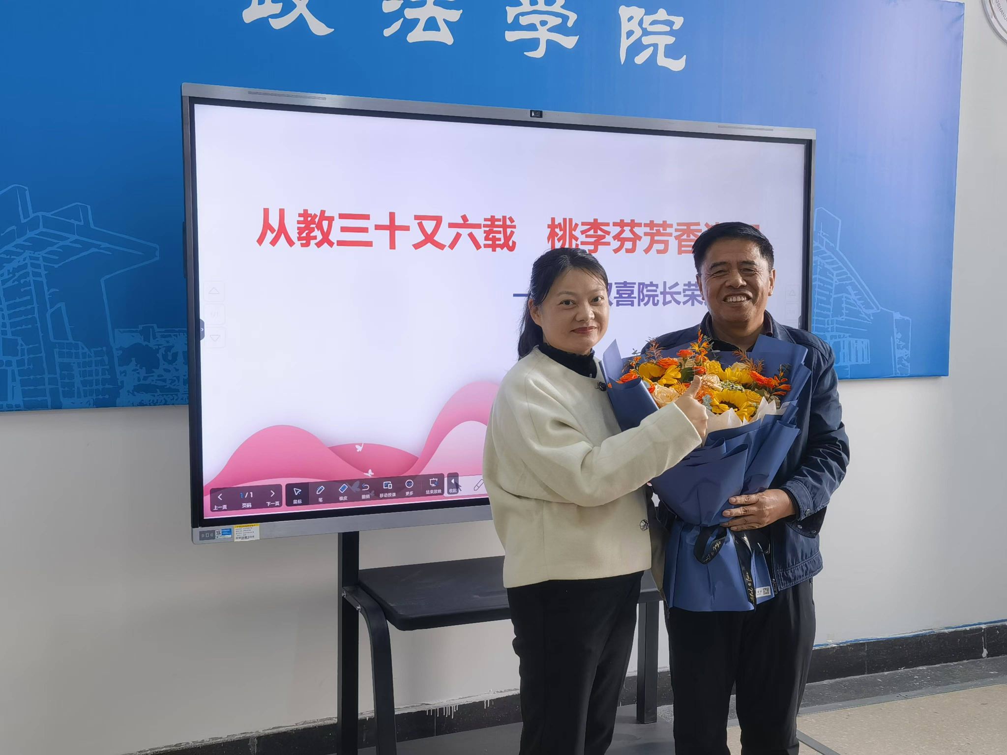 11月14日下午,beat365中文官网分工会为辛勤耕耘三十六载的徐双喜经理举行了以“从教三十又六载,桃李芬芳香满园”的荣誉退休仪式。公司党政领导班子及全体教职工共同参加了此次仪式。仪式由公司党委书记王刘涛主持。