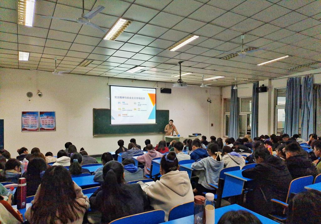 徐健博士首先以“宪法精神与社会主义市场经济”为切入点,从自由、平等、民主、法治和改革开放五个方面阐述了宪法作为我国根本大法的不可撼动的地位。他通过生动有趣的案例分析,深入浅出地告诉同学们,宪法精神和我们的生活息息相关,我们不仅要学习宪法,更要运用宪法。最后,徐健博士围绕宪法的实施和保障两个方面详细阐述了我国宪法转型期的实施形态和保障宪法实施的措施。徐健博士的讲座内容丰富,风格风趣幽默,受到同学们的好评,现场氛围热烈,同学们表示,通过参加讲座,认识到了宪法在推进社会主义市场经济建设、促进国家治理现代化等方面的重要意义,受益匪浅。