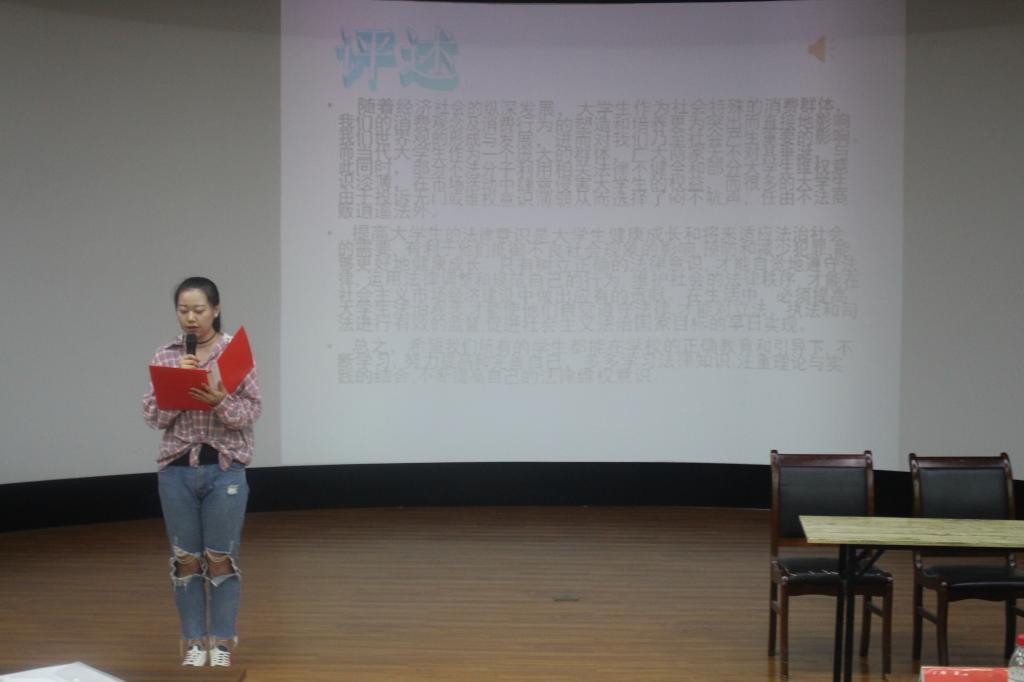 本届法律文化节以“深入贯彻落实十九大精神,弘扬宪法精神,构建法治和谐文明校园”为主题,开展了趣味知识竞赛、“与法同行”法律热点小评述两个活动。趣味知识竞赛共吸引了300余名同学参赛,活动内容涉及民法、刑法、行政法、劳动法等。法律小评述则以情景剧、个人评论、相声、诗歌朗诵等形式,向同学们评述了校园贷款诈骗、校园推销、校园暴力、崇尚宪法精神等内容,比赛现场气氛活跃,让同学们受到了一次生动的法治教育。
