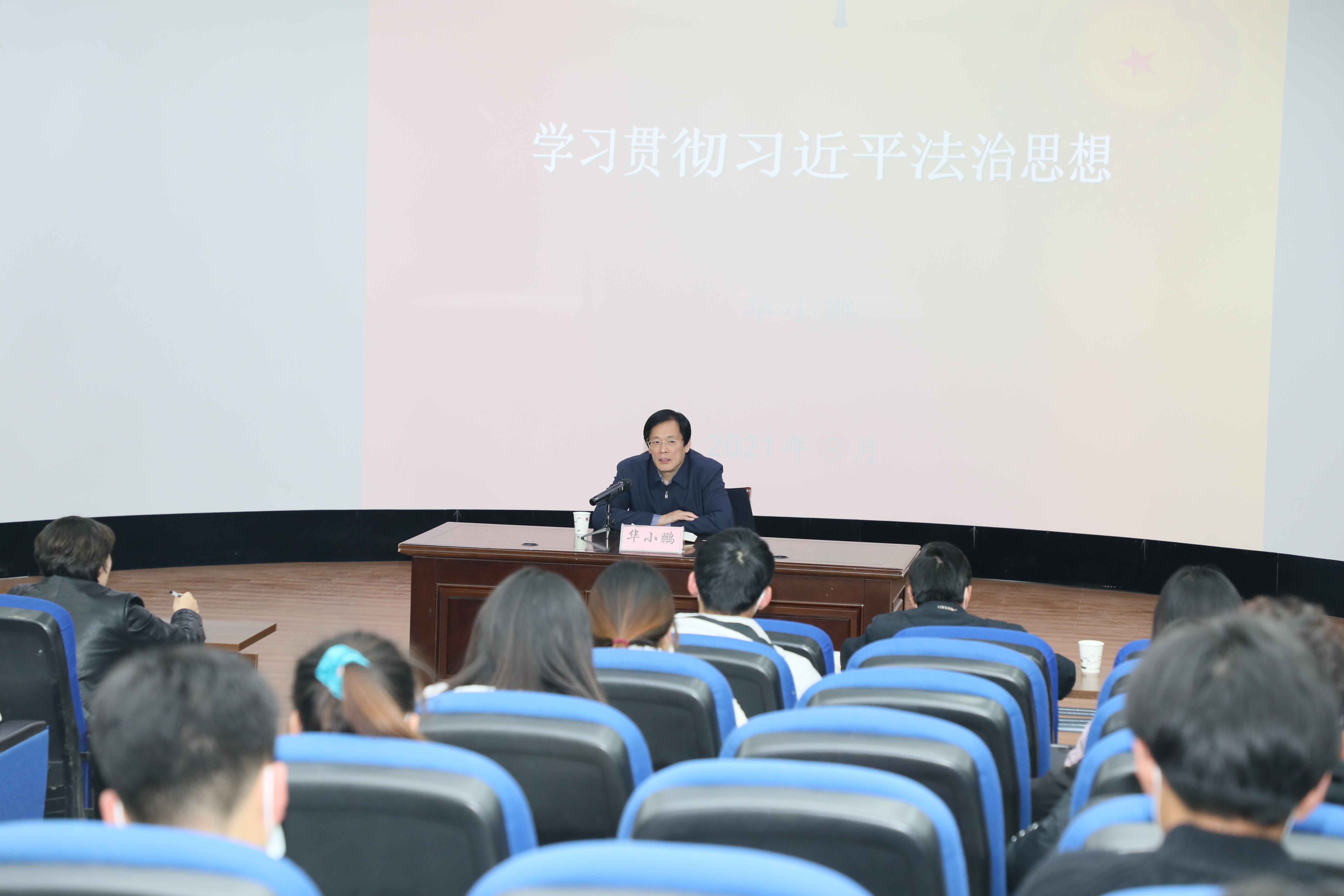 为全面推进习近平新时代中国特色社会主义思想的贯彻落实情况,不断提员工法治素养和道德素质,启迪领航人生规划,3月25日下午,公司党委书记华小鹏教授在2106教室为2020级法学专业员工上了题为习近平法治思想的思政课。