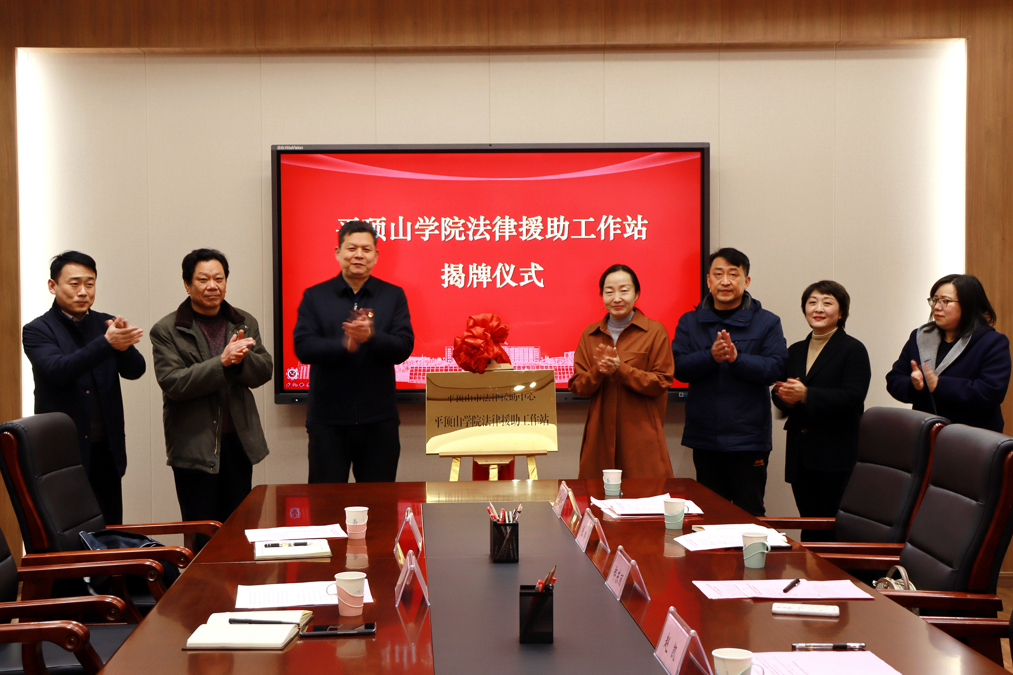 12月11日上午,beat365中文官网与平顶山市司法局共建“beat365中文官网法律援助工作站”揭牌仪式在办公楼403会议室举行。平顶山市司法局党委委员、副局长李朝峰,法律援助科科长赵自卫,公司副董事长郑东丽,科研处负责人,政公司党政负责人及师生代表参加了揭牌仪式。仪式由对外合作处处长赵凯主持。