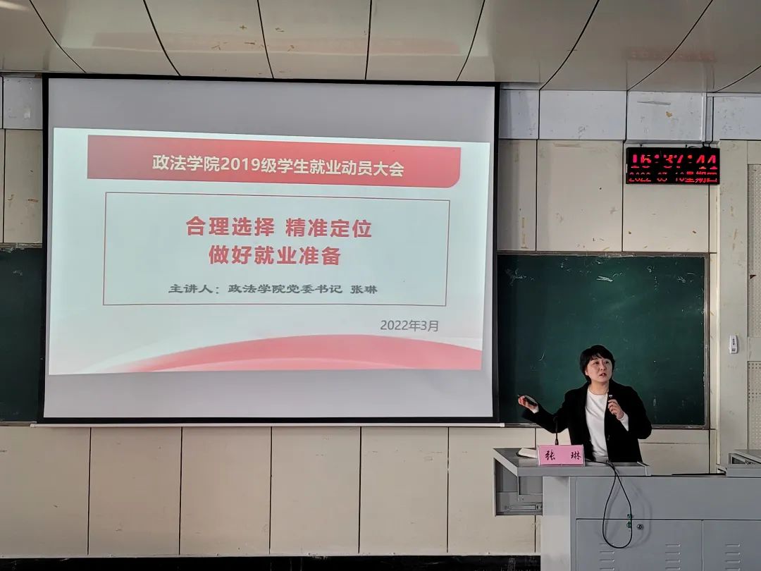 党委书记张琳从考研形势分析、未来路径选择、如何做好就业准备三方面为同学们进行考研动员及就业指导,详细讲解了研考、法考、公考的侧重点和未来发展方向,提醒同学们尽快找准自身定位,合理选择“三考”,走好、走对适合自己的职业规划路。张琳强调,“就业是目标,考研是路径”,希望同学们能够正确看待考研和就业的关系,保持清醒的头脑,从自身条件出发,科学地选择最适合自己的未来发展路径。