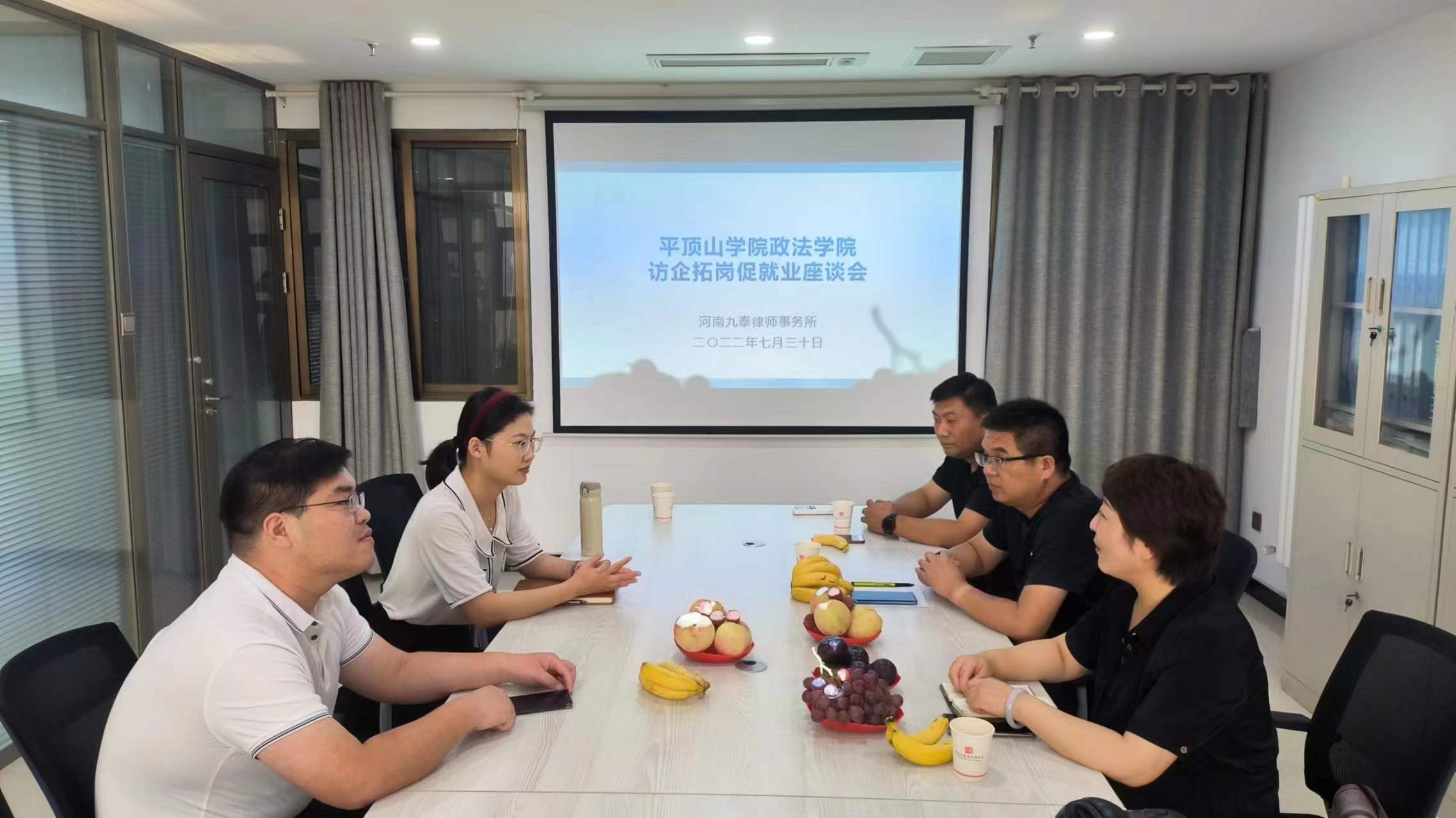 依据《beat365中文官网书记董事长进园区访企拓岗促就业专项行动工作方案》的安排部署,为充分发挥书记、经理带头访企拓岗的重要示范作用,千方百计开拓更多就业岗位和机会,加强高校与企业的全面、深度合作,促进公司毕业生更加充分更高质量就业,7月30日下午,公司党委书记张琳、副经理段贞锋、马君昭带队赴河南九泰律师事务所开展“访企拓岗促就业”活动。