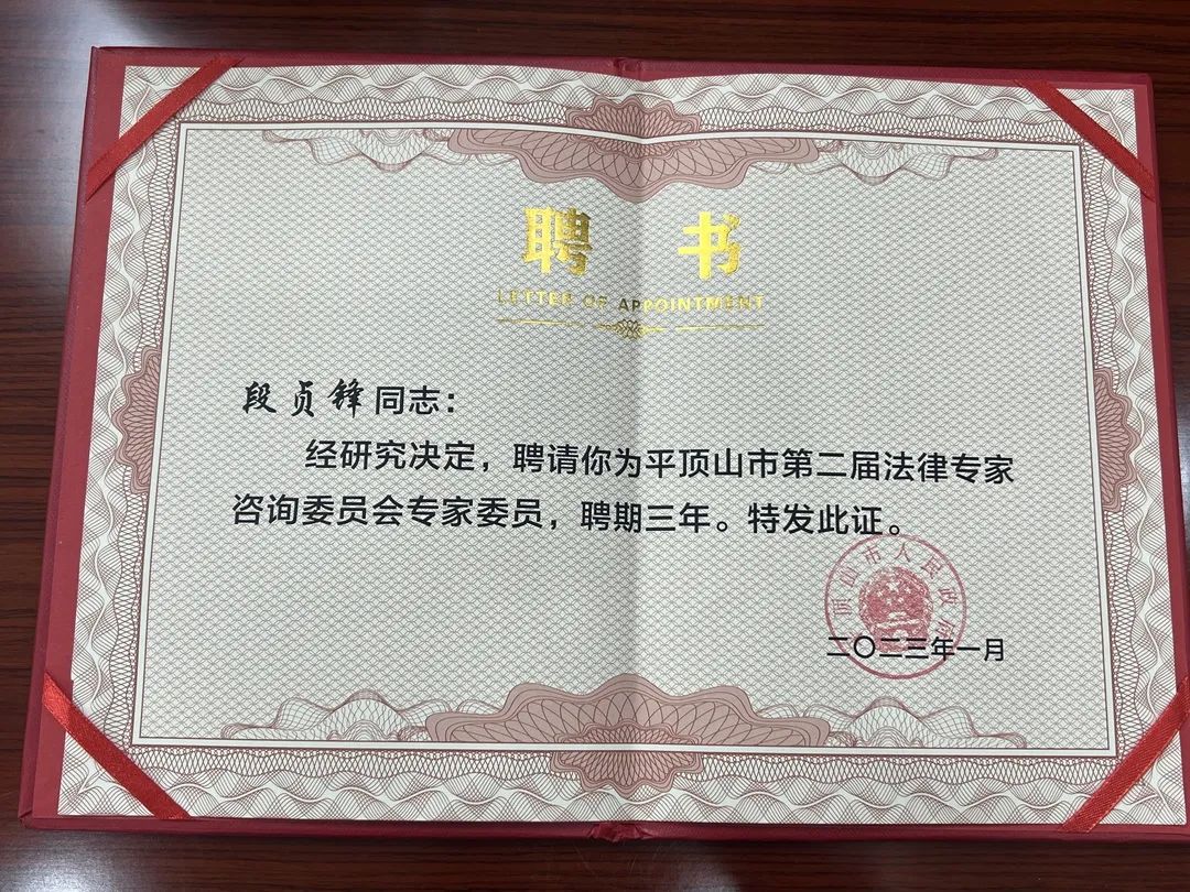 为进一步提高依法行政水平,经平顶山市人民政府同意,决定成立平顶山市人民政府第二届法律专家咨询委员会。公司段贞锋老师受聘成为专家咨询委员会专家委员。