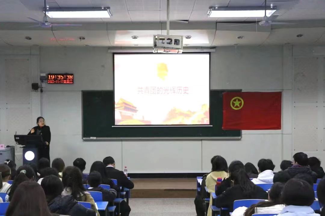 石老师以“回顾辉煌历史、感悟时代责任”为题,从“团的三个发展阶段”“团的两个历史事件”“团的十九次会议”三个方面着手,带领同学们回顾了中国共青团的发展历程。通过观看共青团发展历程的视频,广大团员在一幕幕的场景中,深刻的意识到中国共青团的百年奋斗史充满艰辛,在团的每一个发展阶段都有着不同的挑战,正是一代代青年都披星戴月、日夜兼程地跟紧党的步伐,才将共青团建设为党强有力的助手和后备军。