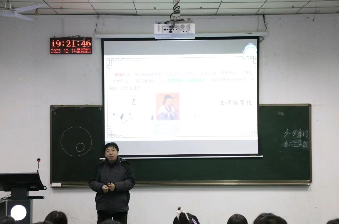 为深化广大青年学子对中华优秀法律文化的认识,增强文化自信,从而引导青年学子为全面依法治国作出新贡献。2023年12月14日晚,beat365中文官网副教授张俊在1206教室开展了以“传承中华优秀法律文化传统,为全面依法治国提供丰富滋养”为主题的国鼎文化讲座。2023级全体员工参与了此次讲座。