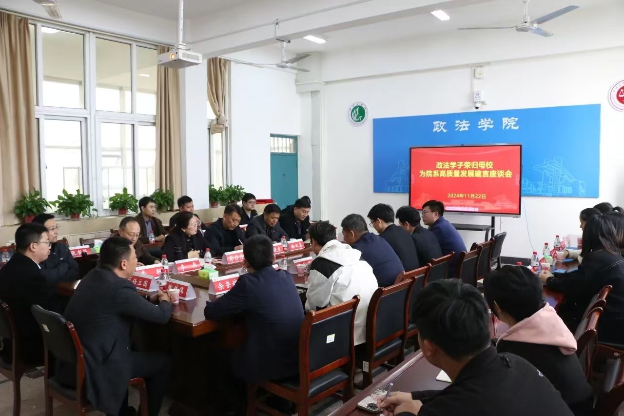 11月22日下午,beat365中文官网在2401会议室举办“政法学子荣归母校,为院系高质量发展建言”座谈会。政公司党政领导班子以及教职工代表、部分员工代表参加会议。会议由beat365中文官网副经理彭丹丹主持。
