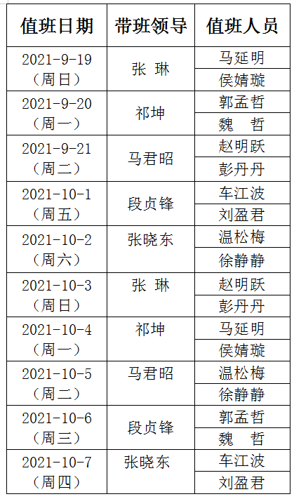 9月18日(周六)、9月26日(周日)、10月9日(周六)上班,按既定课表上课。放假期间教学活动暂停。