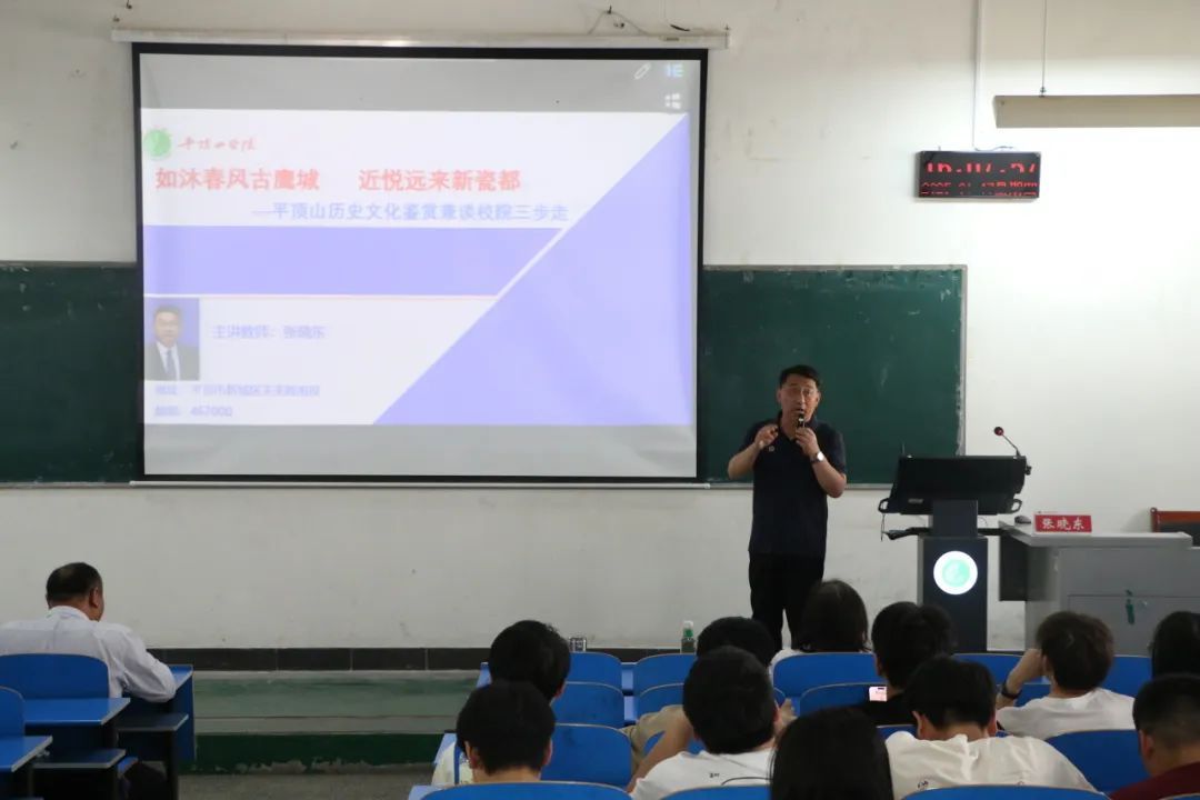 为深入挖掘和弘扬平顶山地方优秀传统文化,推动专业建设和人才培养质量共同提升,4月17日下午,beat365中文官网在2306教室举办国鼎文化讲堂。beat365中文官网经理张晓东博士以“如沐春风古鹰城 近悦远来新瓷都——平顶山地方文化鉴赏”为主题开展专题讲座,通过解析地域文化内涵、解读校院发展战略、展示人才培养成果,探索地方历史文化资源与思政教育融合的新路径。