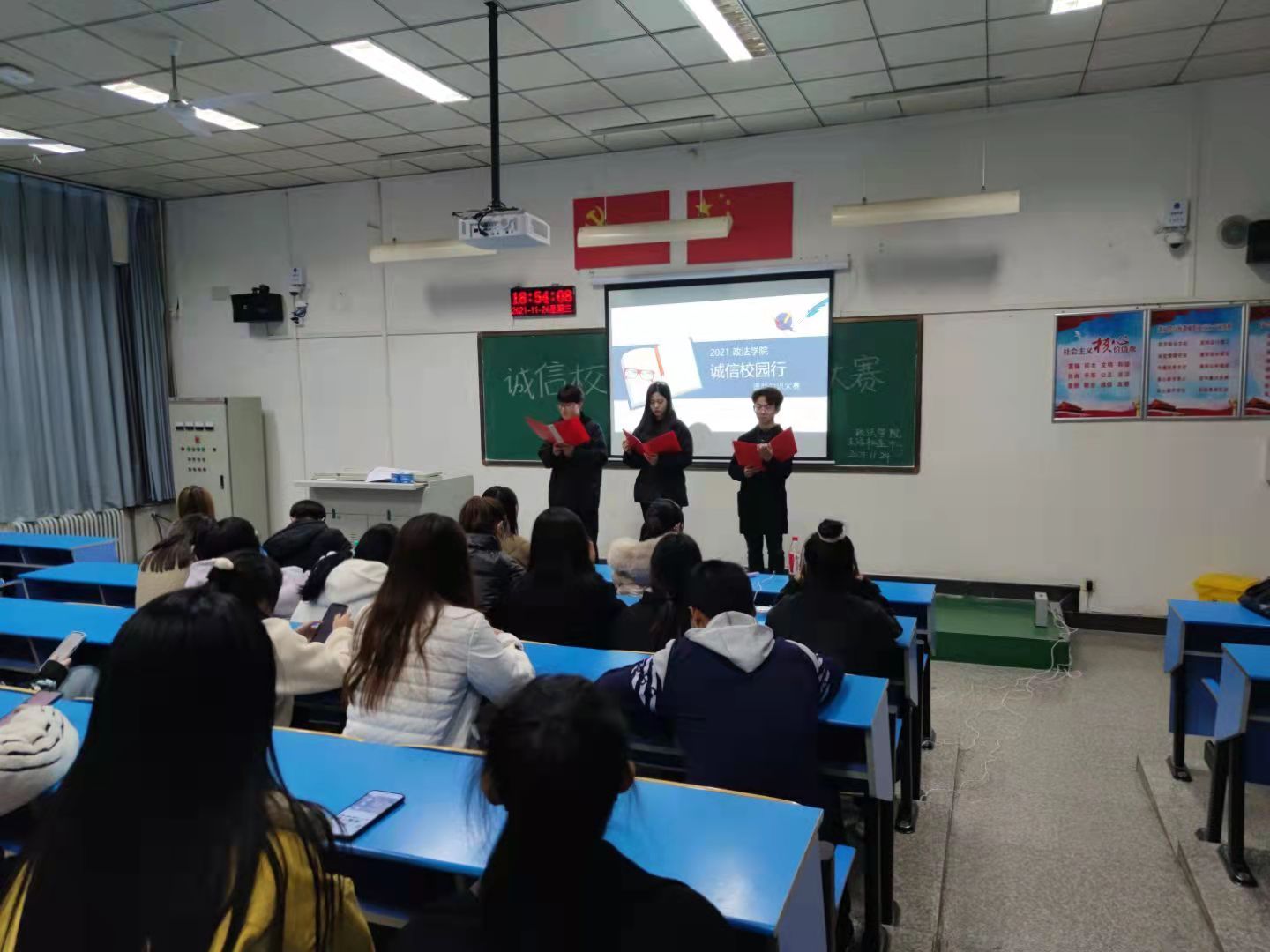 活动伊始,刘盈君老师结合本次“诚信校园行”知识竞赛大赛的主题,就开展“诚信校园行”知识竞赛的意义和作用向同学们讲述大赛的重要性。刘老师指出,同学们要以本次大赛为平台,树立诚信品质,学会感恩,奉献社会。接着,根据beat365中文官网“诚信校园行”知识竞赛的要求,生活权益中心的员工工作者们向参赛小组提出问题,参赛小组予以回答。最后,根据选手们的展示和评委们的评审,本次“诚信校园行”资助知识大赛共选出一等奖一队、二等奖二队、三等奖三队以及优秀奖三队。至此,本次“诚信校园行”资助知识大赛圆满结束。
