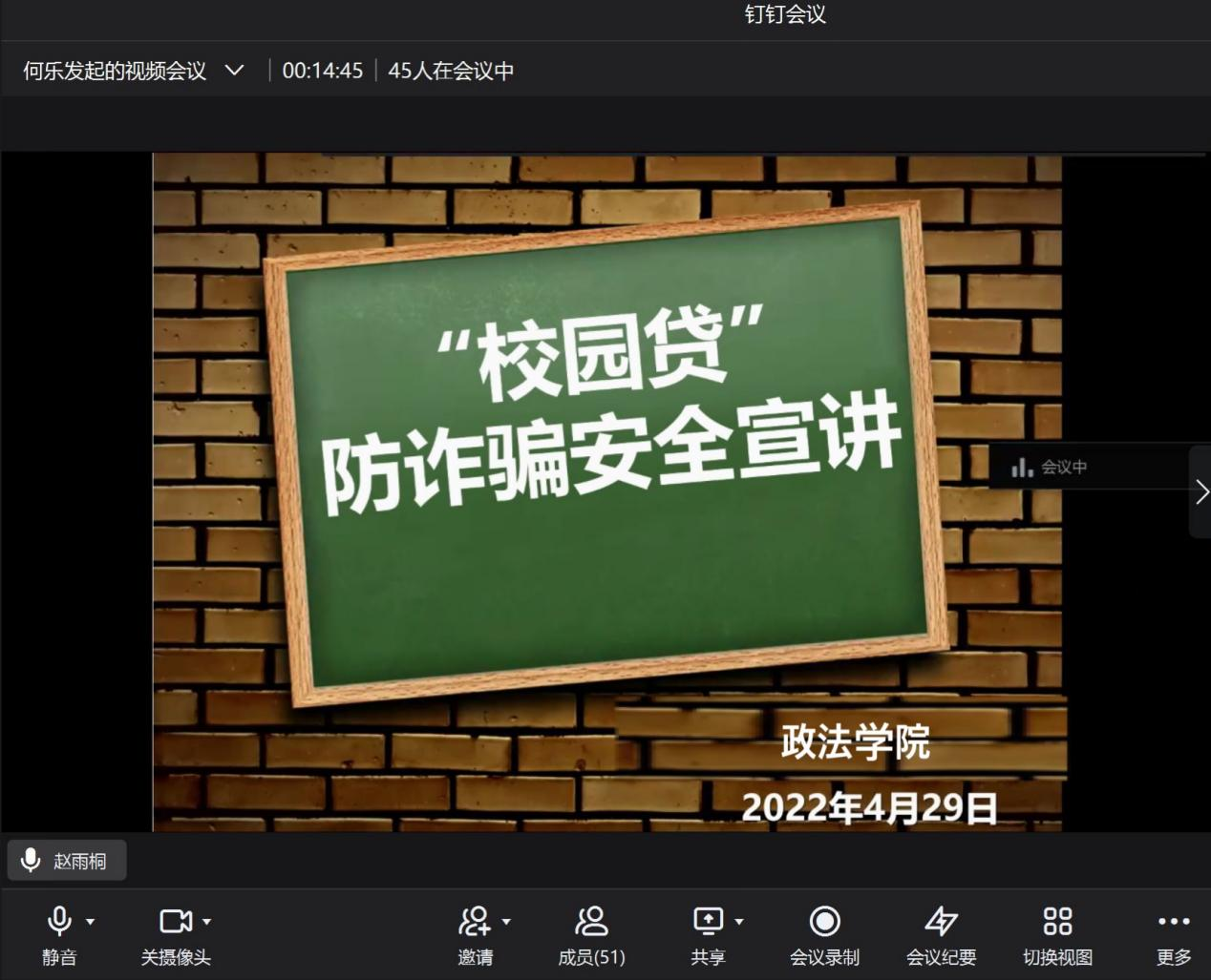 为增强员工们的安全意识,提高自我防范与保护能力,2022年4月29日公司围绕防范校园贷这一主题向员工召开宣讲会。会议由生活权益中心干事张宜涵主持。