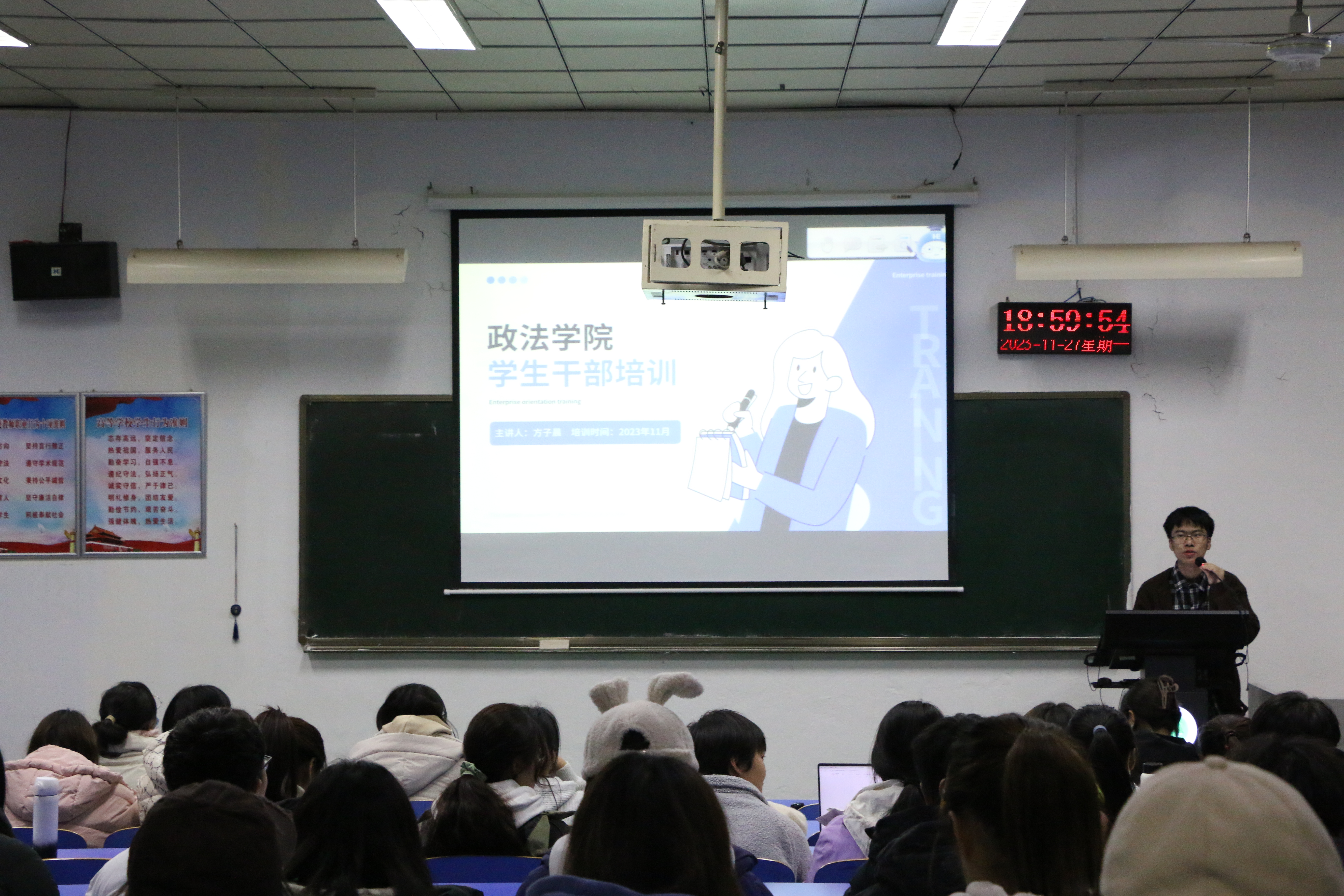 培训伊始,方子晨通过讲述自身经历,为同学们分享自己的工作初心和平日期间积累的工作经验,为员工工作人员树立正确的工作目标和开展高效率的工作提供借鉴。接着,王杨强调作为员工工作人员应强化服务意识,提升沟通本领,增强执行能力。同时,他指出员工在策划活动时要善于学习借鉴其他高校的优秀活动,发扬创新精神,通过更加生动活泼、新颖独特的形式吸引同学们参与其中。最后,方子晨和王杨以现场互动的形式,对参训同学工作和生活中遇到的问题进行了坦诚的交流。