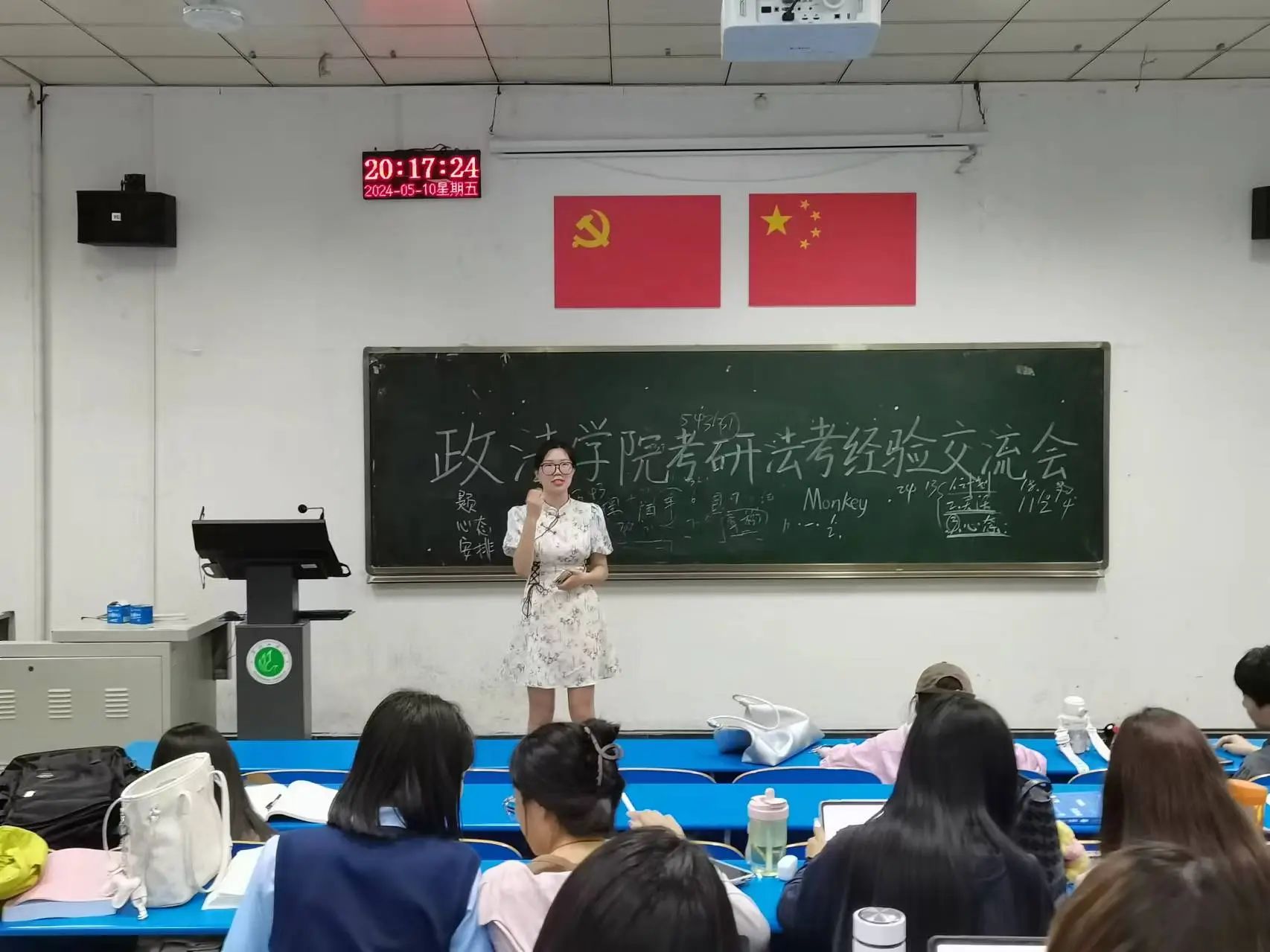 本次会议邀请了2020级考研上岸的彭博、任家泽、朱颜、王嘉华、张易帆及法考通过的朱紫阳、杨嘉琳等同学,分别为大家做考研和法考的经验分享。