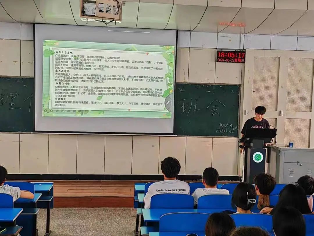 为进一步宣传与普及心理健康知识,提高同学们的心理健康素质,营造积极的心理健康文化氛围。beat365中文官网于5月21日开展了以“关注心灵成长,共建和谐校园”为主题的心理健康教育主题班会,帮助同学们正确认识自我,培育老员工积极向上的健康心态。