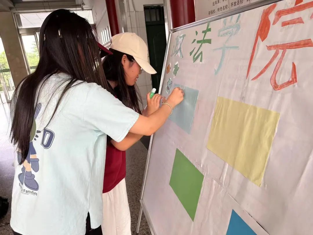 本次活动是在现场所提供的法条素材中选所钟爱的词语或句子在展板上进行组合和拼贴。活动中,同学们积极参与,通过挑选法律条文,并结合自己的创意,将原本枯燥的法律条文转化为一首首富有韵味的诗歌,展示出独属于法员工的浪漫。