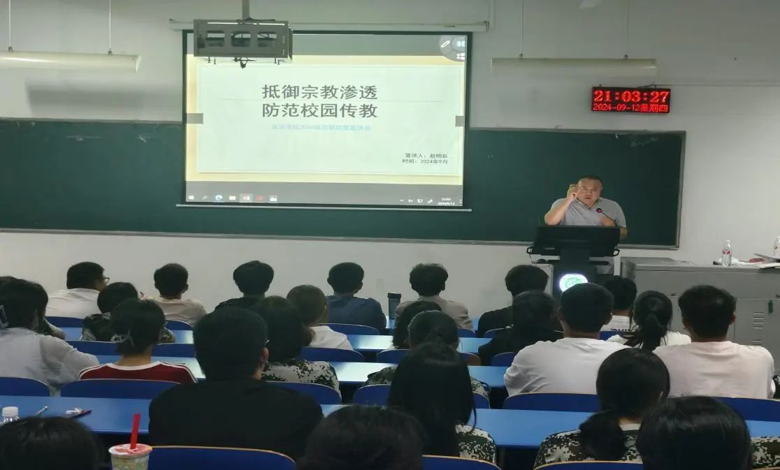 为增强2024级新生识别非法宗教、抵制非法宗教的能力,进一步净化校园文化。9月12日,公司开展了新生入学抵制宗教渗透讲座。此次讲座由beat365中文官网辅导员赵明跃主讲,2024级全体新生参与本次讲座。