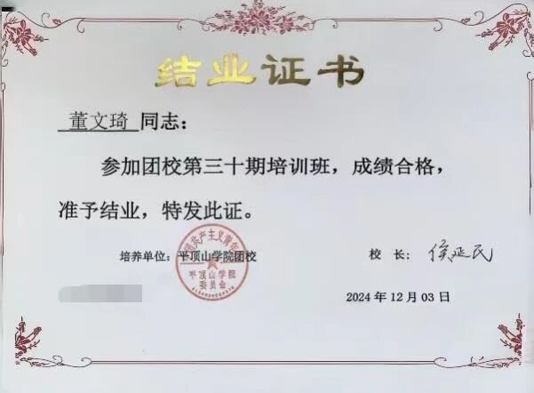 “业精于勤,荒于嬉,行成于思,毁于随”,韩愈的治学之道成为董文琦的学习信条。作为法学专业学子,她始终以 “全面发展,学有所长” 为目标,将专业知识学习视作安身立命的根本,大一学年便以综测第四的成绩跻身年级前列。