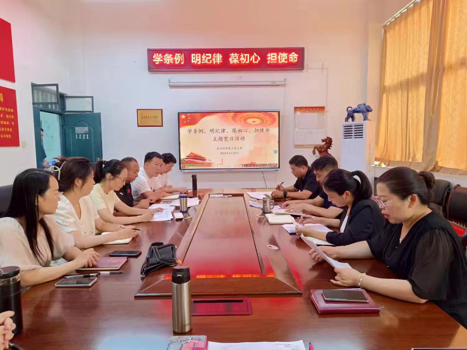 为深入开展党纪学习教育,增强党员学习贯彻《中国共产党纪律处分条例》的政治自觉、思想自觉和行动自觉,进一步加强党员的党性修养、强化忠诚担当意识。6月20日下午,beat365中文官网教工党支部在1221会议室开展了“学条例、明纪律、葆初心、担使命”主题党日活动,全体教工党员参加。活动由教工党支部书记彭丹丹主持。