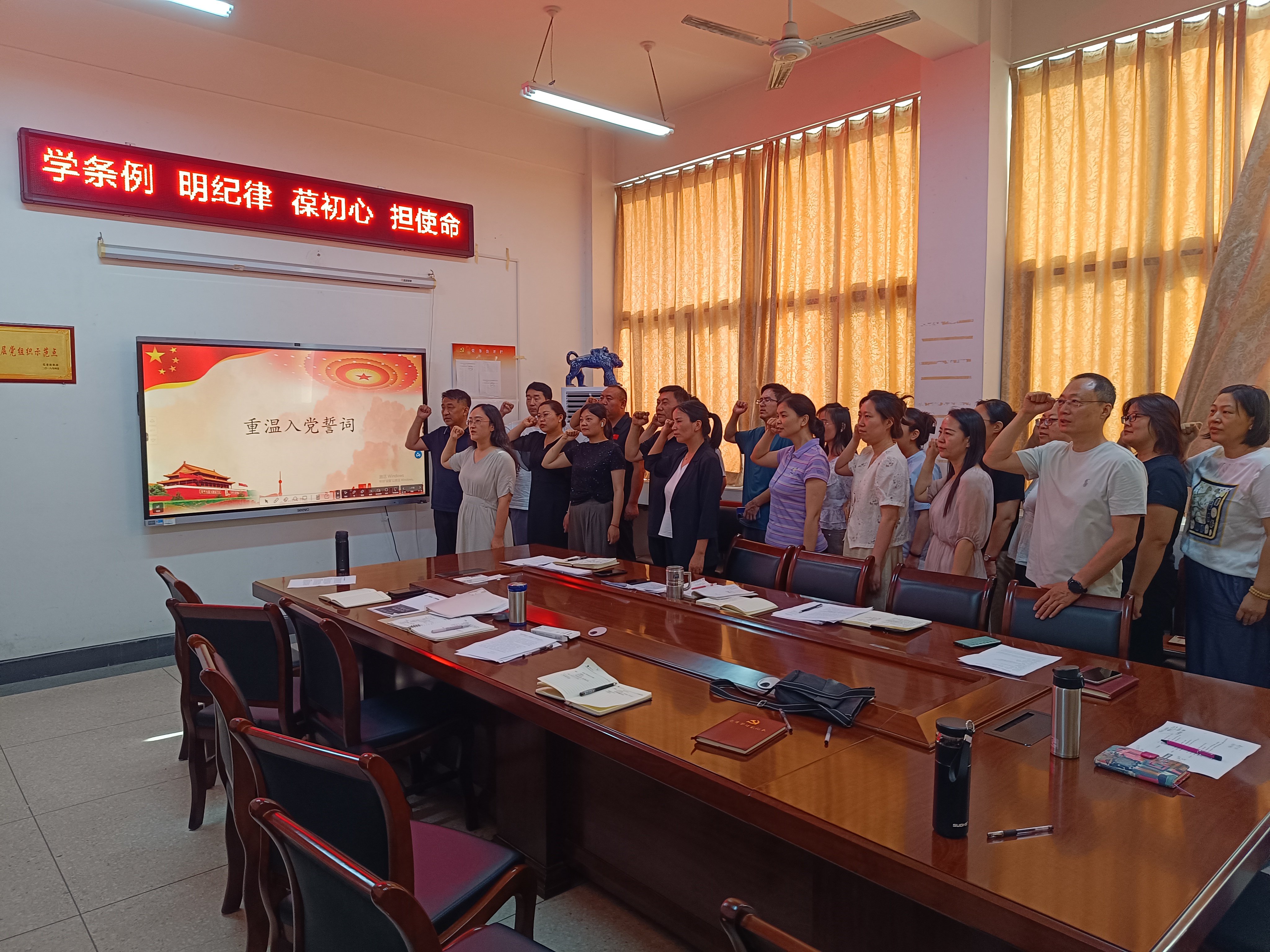 会议开始,在魏哲同志的带领下,全体党员重温入党誓词,铿锵有力的誓词让党员们再次感受到了入党时的初心和使命,坚定了为党和人民事业奋斗的决心。党员代表徐健同志领学了习近平总书记关于党的纪律建设的重要论述,深刻阐明了纪律教育的重大意义,作为党员,要真正把学纪知纪明纪守纪内化于心、外化于行。