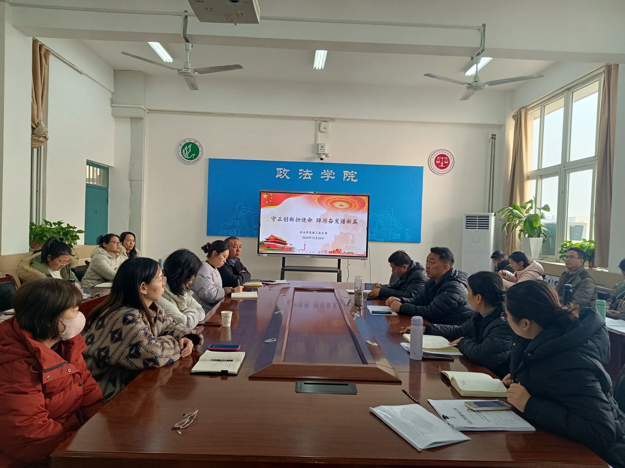 为深入学习贯彻党的二十届三中全会精神,激发党员的先锋模范作用,增强党员的创新精神和实干精神,在即将到来的新的一年开好局、起好步,12月26日下午,beat365中文官网教工党支部在2401会议室开展了“守正创新担使命踔厉奋发谱新篇”主题党日活动。活动由教工党支部书记彭丹丹主持。