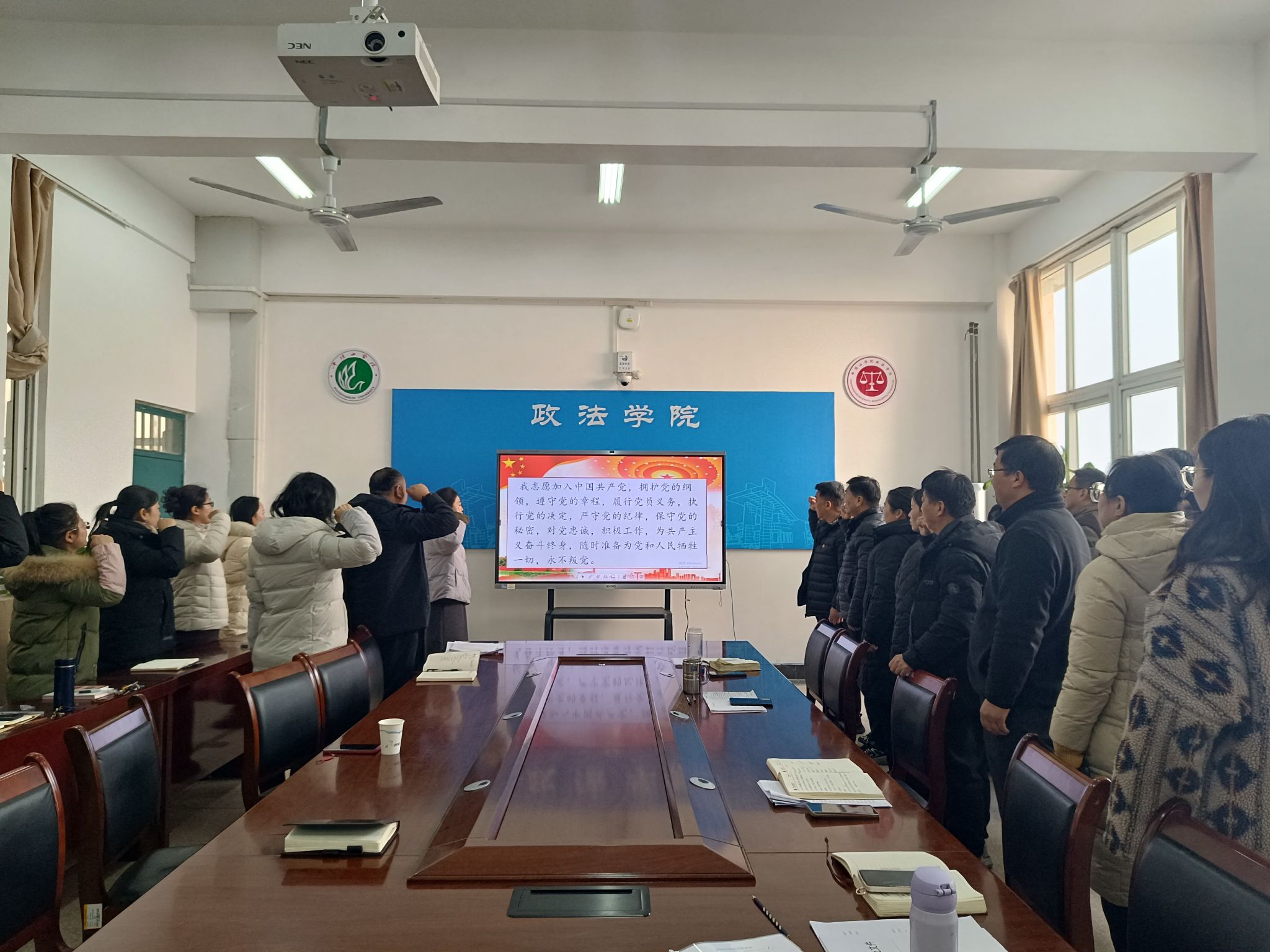 活动在庄严洪亮的重温入党誓词中开始,全体党员在教师党员代表刘盈君带领下高举右手重温入党誓词,用铮铮誓言彰显永恒初心,牢记党员意识,永葆党员本色。