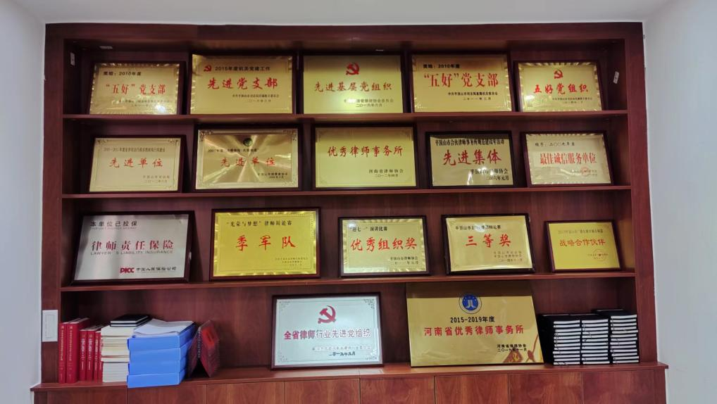 大乘律师事务所于2006年1月被平顶山市律师协会评为先进集体;2008年被平顶山市消费者协会评为“2007年度消费维权 共筑和谐”先进单位;2010年3月被平顶山市消费者协会授予“2009年度最佳诚信服务单位”;2011年3月被中共平顶山市司法局直属机关委员会评为“五好党支部”;2012年4月被河南省律师协会评为“优秀律师事务所”;2012年8月被共青团河南省委、省综治办、省司法厅评为“优秀青少年维权岗”;2012年6月被平顶山市司法局评为“2010-2011年度全市司法行政系统政风行风建设先进单位”;2012年-2015年连续三年被平顶山市司法局评为“优秀基层党支部”;2013年获得平顶山市司法局组织的“庆七一”演讲比赛第二名;2014年获得平顶山市司法局组织的律师辩论赛三等奖;2019年获得平顶山市司法局组织的律师辩论赛二等奖;2019年11月获得“2015-2019年度河南省优秀律师事务所”荣誉称号;2021年9月,河南大乘律师事务所主任张国强同志被司法部表彰为“全国优秀律师”。多年来,河南大乘律师事务所始终秉持捐资助学、培育优秀法律人才的理念,与高校beat365中文官网深度合作培养优秀法律人才,并持续为品学兼优的经济困难员工提供资助与实习机会,帮助他们顺利完成学业尽一份微薄之力,充分展现河南大乘律师事务所的人文情怀与社会责任。
