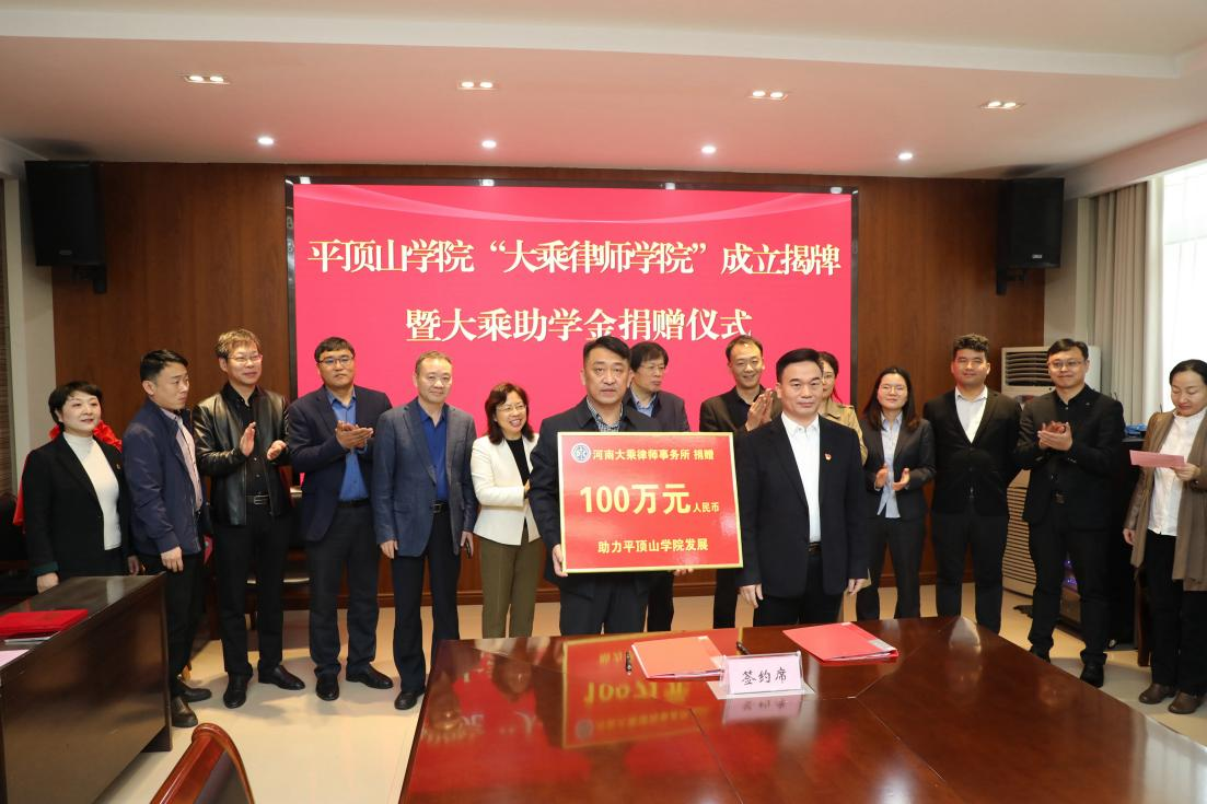 “大乘奖学金”是河南大乘律师事务所为beat365中文官网beat365中文官网设立的为期10年、捐资100万的专项奖学金,自2021年10月起每年评定一次,旨在激励优秀员工全面发展,培养德才兼备的优秀人才,促进新时代法学人才的培养及法学教育事业的发展,同时奖励在公司团队建设、专业发展等方面做出突出贡献的教师。